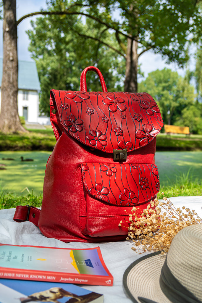 Red Backpack | Flower Pattern